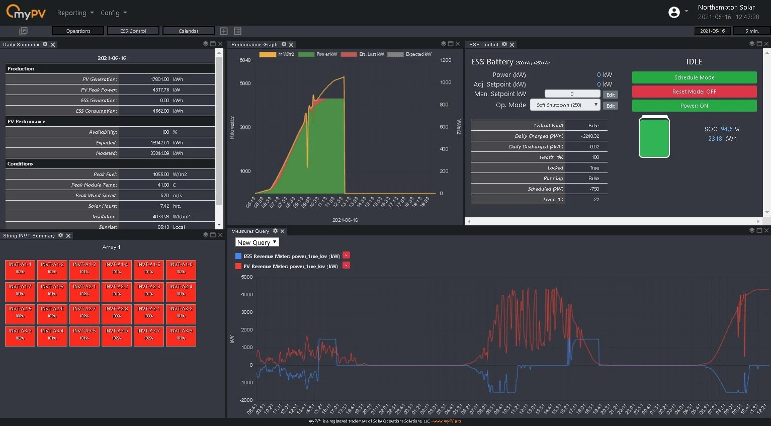 For solar+storage sites, Acuity-EMS provides real-time controls to ensure charging does not exceed available PV power and ensure the combined solar and discharged stored energy do not exceed the PPA.